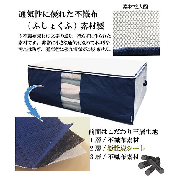 布団収納袋 特大 布団袋 前面 活性炭シート入 収納袋 掛け布団 敷き布団 をまとめてスッキリ 持ち手 透明窓付 通気性の良い 厚手 不織布製 折りたためる 軽量