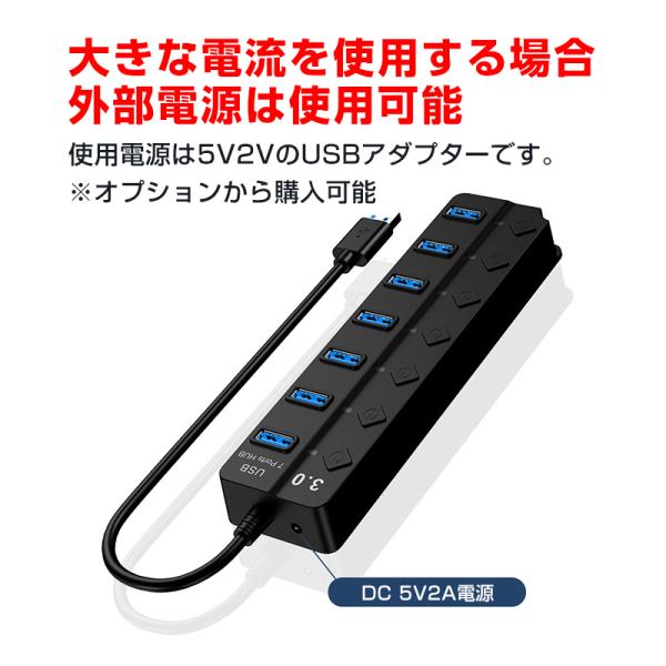 USBハブ USB3.0 7ポート USBコンセント 電源付き USBポート拡張 充電可 高速データ転送 独立スイッチ付き LEDライト付き 最大転送速度5Gbps パソコン