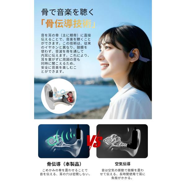 最新型・20%OFFクーポン 骨伝導イヤホン ワイヤレスイヤホン Bluetooth5.4 骨伝導 高音質 イヤホン 耳を塞がない 通話 マイク付 IPX7防水 自動ペアリング 軽量