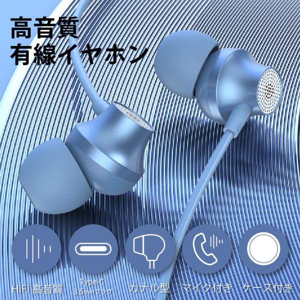 イヤホン 有線 タイプc 軽量 マイク付き ケース 付き カナル型 Phone 15 16 android 対応 イヤホンジャック 音楽 高音質 マイク DAC内蔵 Galaxy pixel oppo