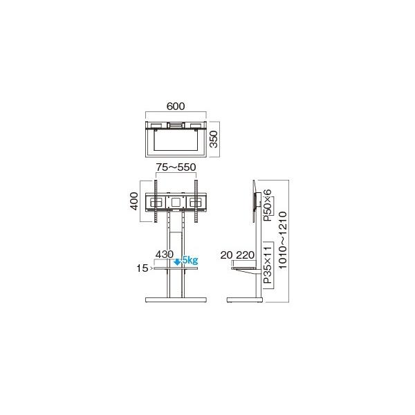 ハヤミ工産 〜65V型対応 壁寄せスタンド TIMEZ ホワイト KF-260W