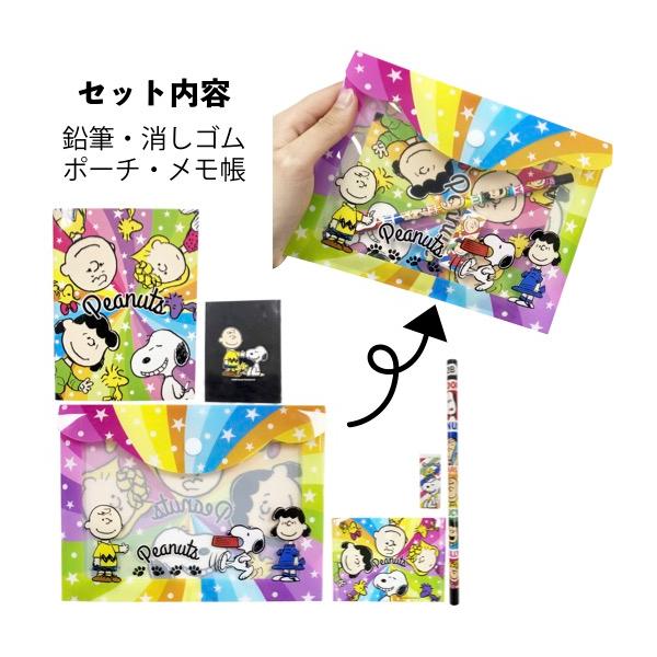 スヌーピー BIGポーチ文具セット 景品 粗品 文房具 鉛筆 鉛筆 消しゴム snoopy 4点セット