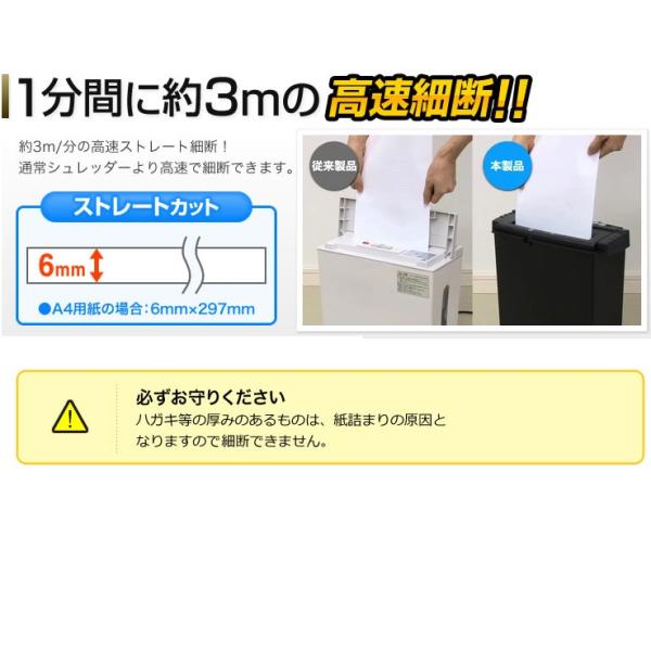 電動シュレッダー 家庭用 高速ストレートカット A4 6枚細断 クレカ対応 EZ4-PSD012