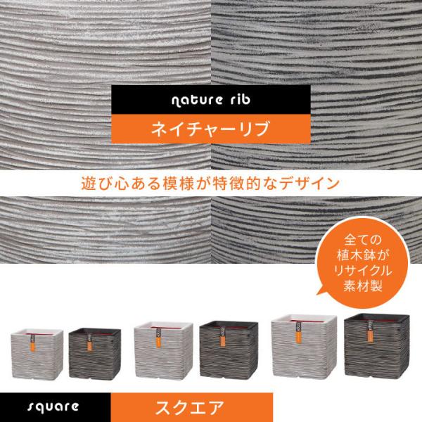 植木鉢 おしゃれ 軽量「カピ(Capi) ネイチャーリブ スクエア Mサイズ(□40×H40cm)」13号鉢相当/大型/アントラシート・アイボリー/底穴なし/トーシン