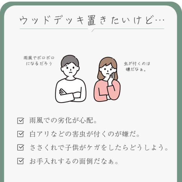 人工木 ウッドデッキ 組立簡単 庭 ベランダ テラス コンパクト 屋外用 耐久性 防水 防腐 メンテナンス不要 木目調 おしゃれ DIY