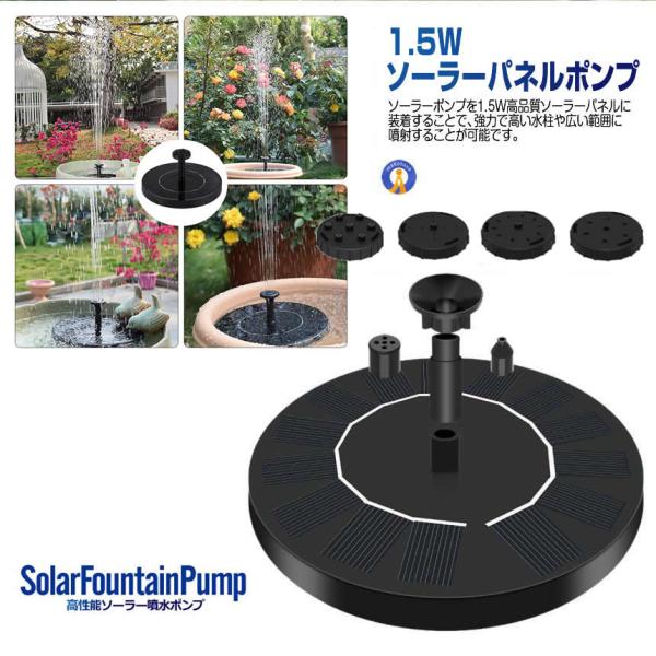 ソーラーポンプ 噴水 屋外 1.5w ガーデン用噴水 丸型太陽噴水ポンプ 屋外 太陽光充電 水面 設置 高性能 多用途 プール 水槽 池 庭の装飾用 ガーデン用 SOLAPPF