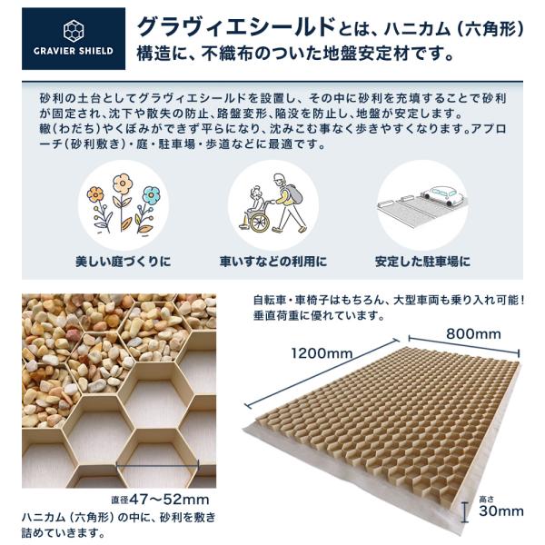 砂利固定材 グラヴィエシールド 1枚 1200×800×30mm 約0.96平米 砂利舗装材 ベージュ 保護材 軽量 ハニカム グランドキーパー GRAVIER SHIELD フランス