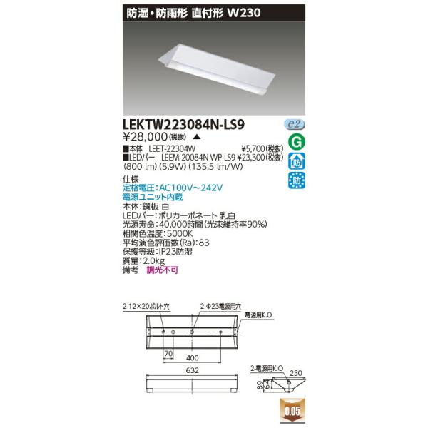 [法人限定][即納在庫有り] LEKTW223084N-LS9 東芝LEDベースライト 直付20形W230 防湿・防雨 [ LEKTW223084NLS9 ]
