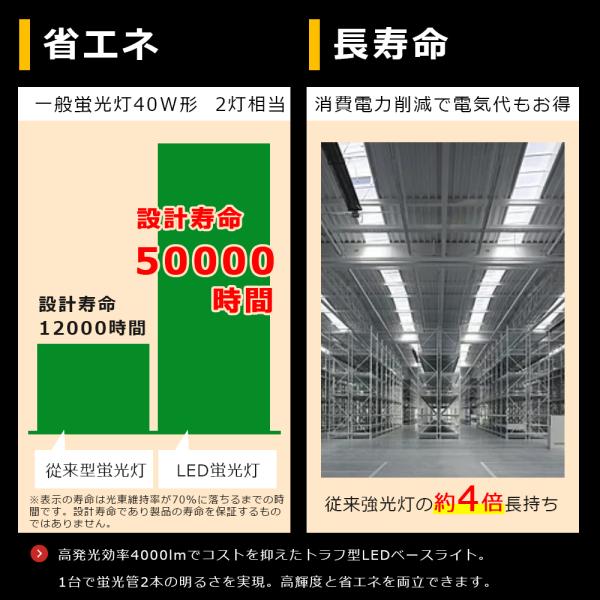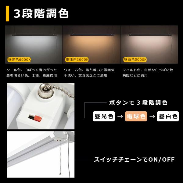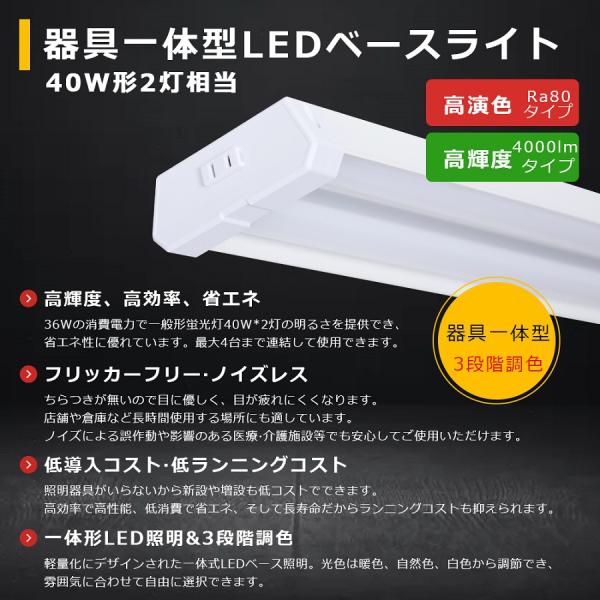 LEDベースライト 吊り下げ LED蛍光灯器具一体型 40W形 3段階調色 電球色 昼白色 昼光色 36W 4000lm LEDベースライト器具 プルスイッチ LED蛍光灯器具セット