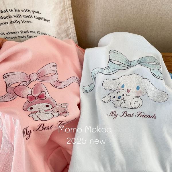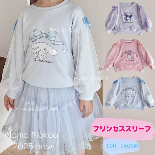 【2025新作】クロミ/マイメロ パーカー tシャツ 長袖 キッズ シナモン リボン付き スウェット ふわふわ スウェットシャツ 外出用トップス ピンク/パープル