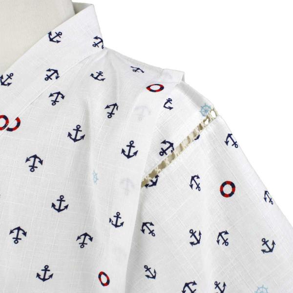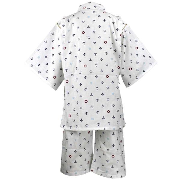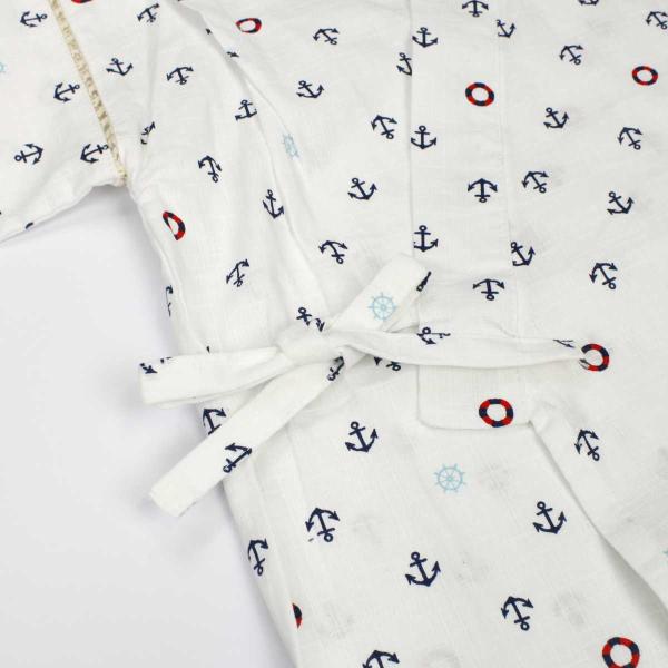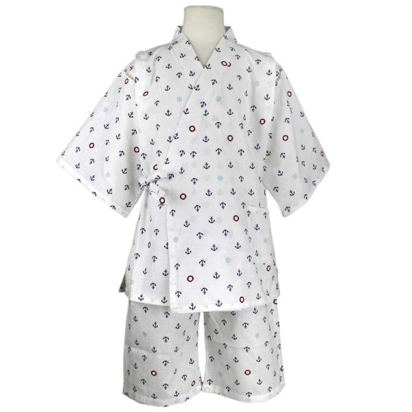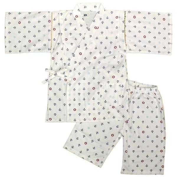 ゆうメール 送料無料 男の子 ジュニア甚平 甚平上下セット マリン 浮き輪 いかり柄 和柄 日本製生地 男児 ボーイズ 子供 甚平 ホワイト(全2色)140cm