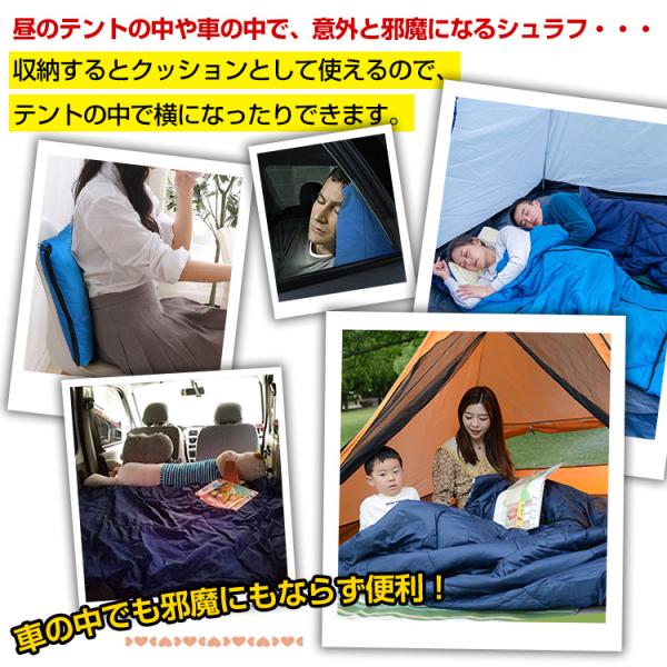 寝袋 シュラフ 夏用 1.16kg 封筒型寝袋 洗える クッションシュラフ 3WAY 封筒寝袋 車中泊 掛け布団 クッション 防災 暖かい 防寒 オールシーズン 簡易布団