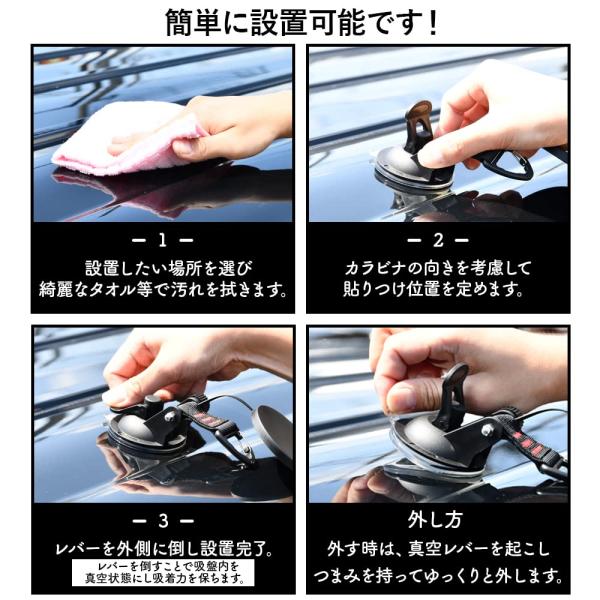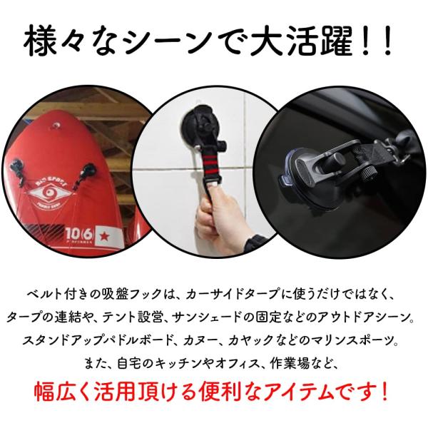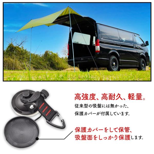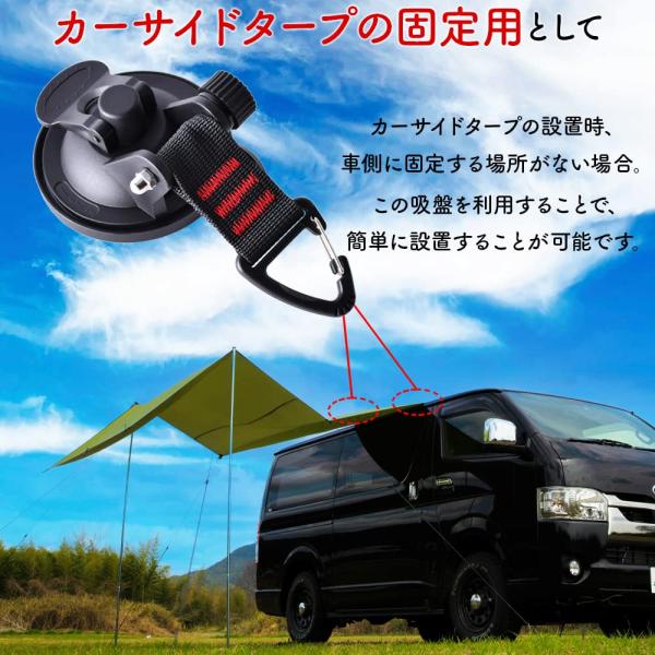 吸盤 4個セット カーサイドタープ タープ連結 日本国内検品 カラビナ型 フック付き 吸盤フック 吸盤アンカー 強力吸盤 アウトドア サンシェード固定 荷物締付け