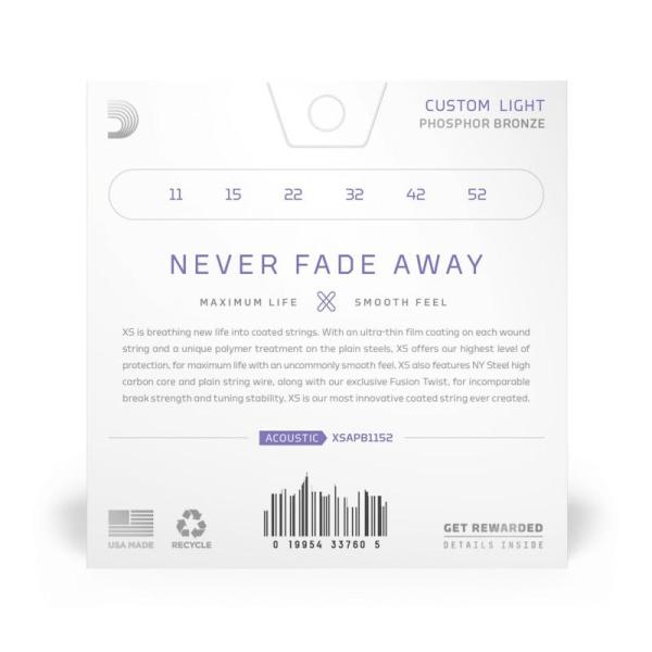 【アコースティックギター弦】D'Addario アコースティック ギター弦 XSシリーズ PHOSPHOR BRONZE CUSTOM LIGHT XSAPB11-52