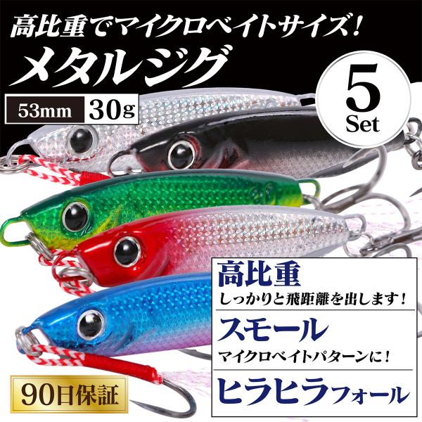 【5個セット】メタルジグ セット 30g 53mm 飛ぶ 高比重 太め 後方重心 スモールベイト サーフジグ 青物 ジグ ヒラメジグ ショアジグ ヒラメ 青物