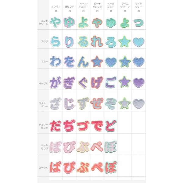 パステルカラーの総刺繍ひらがなワッペン あ行〜な行 ・ 文字ワッペン 入園入学準備 アイロン接着対応