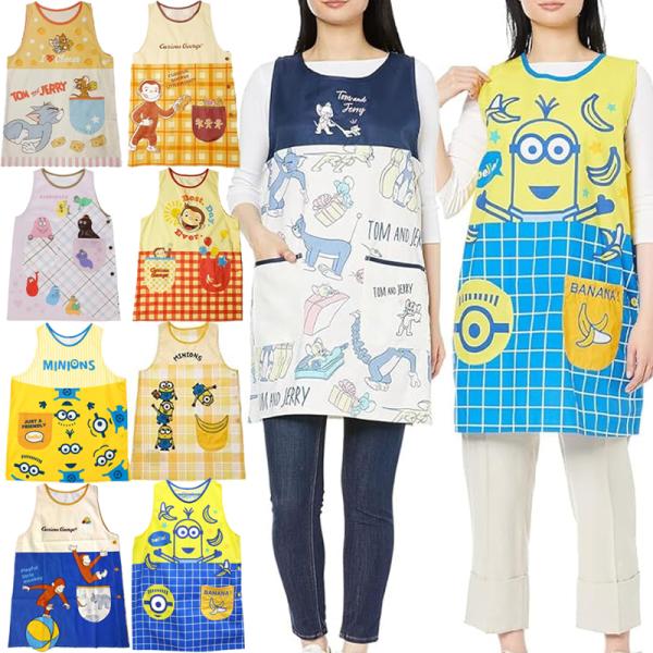 送料無料 ミニオン かっぽう着 エプロン おさるのジョージ トムとジェリー キャラクター 割烹着 大人用 レディース 保育士 キャラクター かわいい ポケット