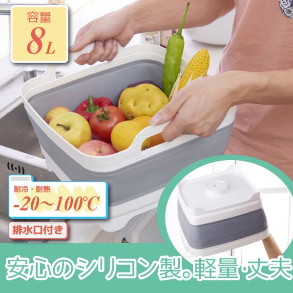 洗い桶 折りたたみ バケツ おしゃれ キッチン シリコン 四角 畳める 洗い 桶 大容量 台所 シンク 排水 食器 かご スリム ソフト 収納 水切り 排水口 軽量