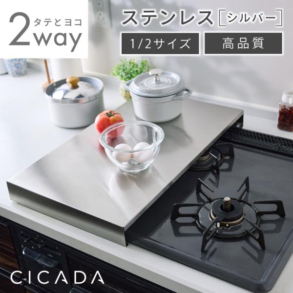 コンロカバー 3口 2口 1口 ステンレス ih用 作業台 調理スペース 食材置き 猫ガード 1/2サイズ 54cm CICADA