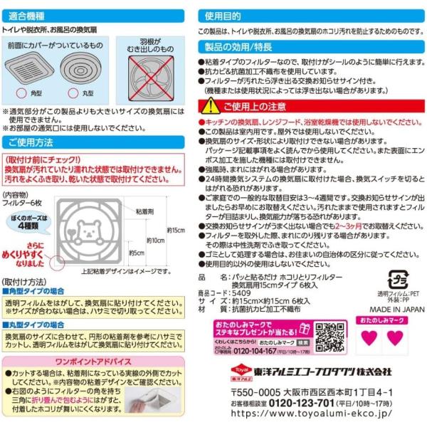 【数量限定1枚増量】【5個セット】パッと貼るだけホコリとりフィルター換気扇用15cm 6枚入