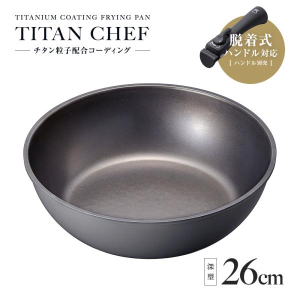 フライパン 26cm 深型 チタンシェフ 鍋 IH対応 取っ手が取れる 高耐久 チタンコーティング フッ素加工 食洗機対応 ガス火対応 焦げ付きにくい 【取っ手別売】