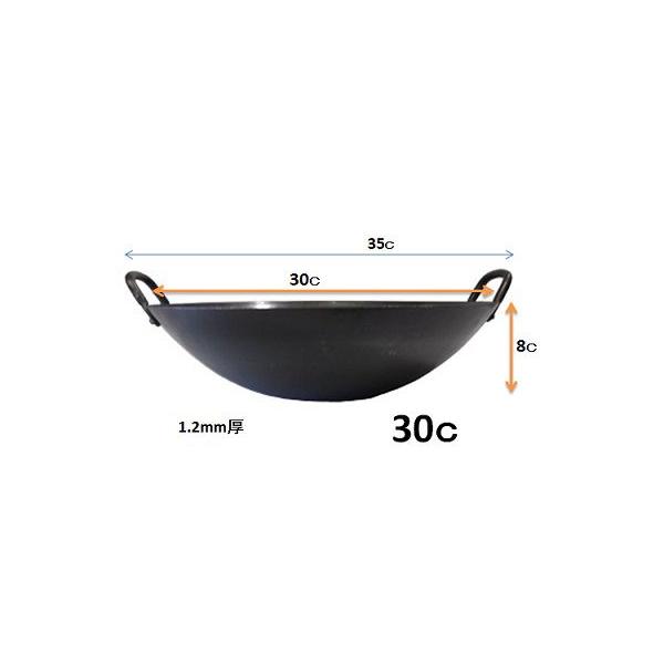 山田 工業所 鉄 打出 両手 中華鍋 30cm 1.2mm厚