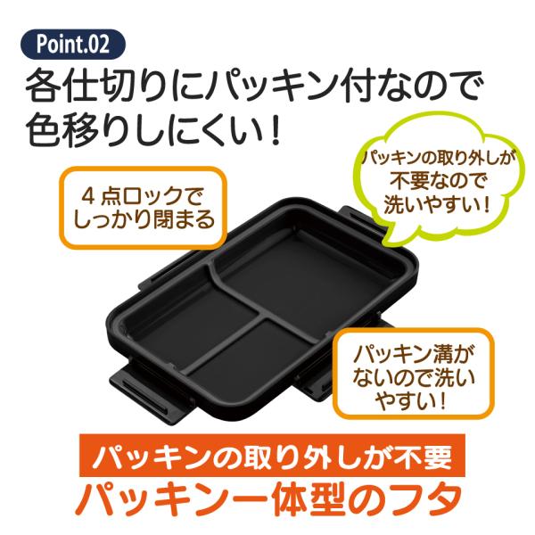 弁当箱 1段 パッキン一体型 容量 850ml ドーム型 抗菌 パッキンレス 4点ロック PALT9AG スケーター レトロフレンチカラー 男子 女子 レディース