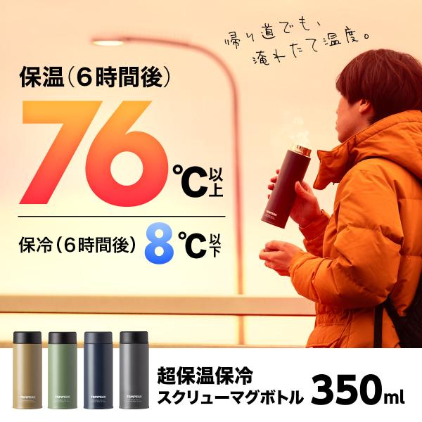 水筒 超保温スクリューマグボトル 350ml 保温 保冷 真空断熱5層構造 ステンレス 国内最強レベルの保温力 スリム アウトドア 登山 テンピーク ATPBS-350