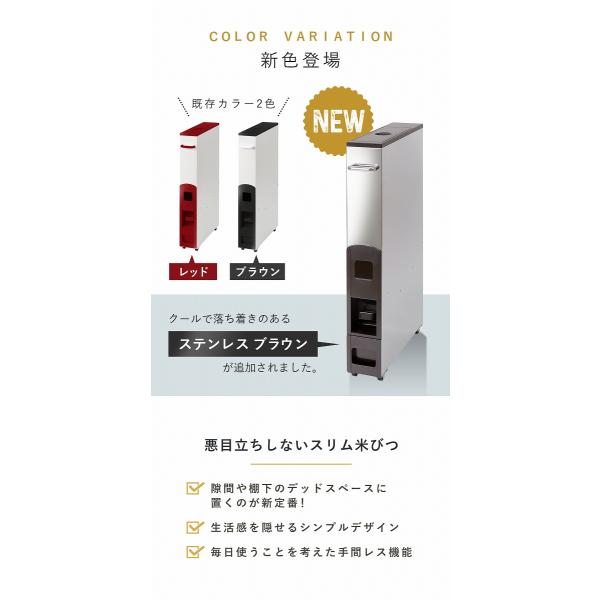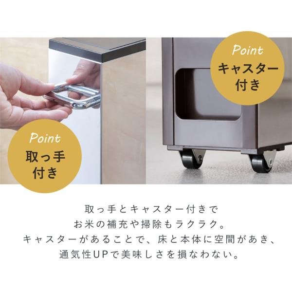 特典付き 米びつ 10kg用 スリム ライスストッカー 12kg ( キャスター付き 10kg 無洗米対応 一合計量 計量米びつ )