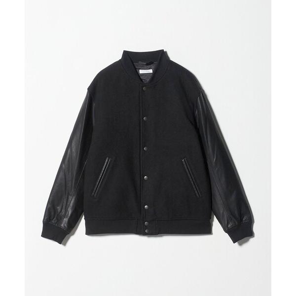 スタジャン 「WEB限定 WARDROBE SMART」ブラックメルトン レザーライク スタジャン メンズ