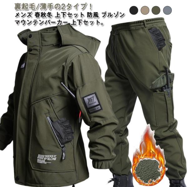 ウインドブレーカー ジャケット パンツ 上下セット メンズ セットアップ 作業服 裏起毛 裏ボア 軽量 撥水 防風 秋冬 冬服 厚手 あったか 防寒ジ