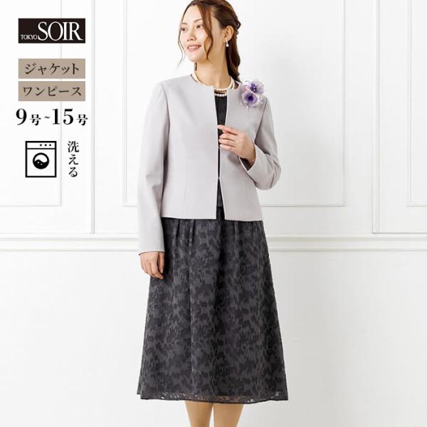 41%OFF セレモニースーツ 東京ソワール レディース 結婚式 入学式 卒業式 ママ 母親 親族 ブライダル パーティ 洗える ウォッシャブル グレー 7803213-01