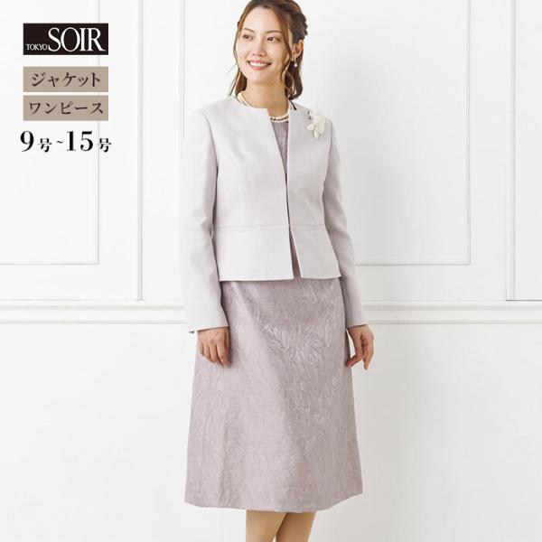 セレモニースーツ 東京ソワール ママ オケージョン レディース 結婚式 入学式 卒業式 ブライダル パーティ 式典 アンサンブル 紫 ピンク ジャカード 7803309