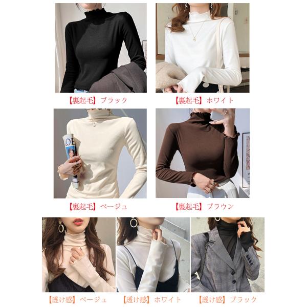 2点目30%OFF!シースルー 裏起毛 薄手/厚手2type カットソー インナー厚手 重ね着 トップス タートルネック レディース 長袖 無地 柔らかい OL 通勤 爆買
