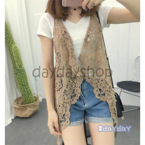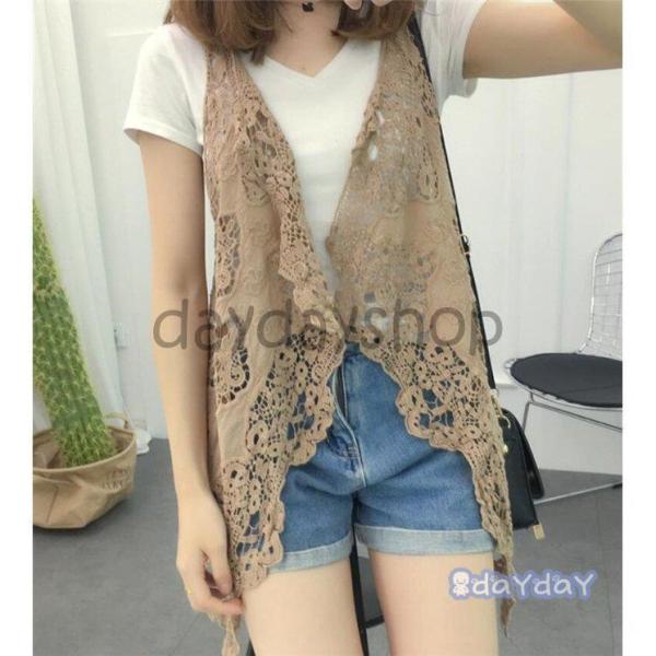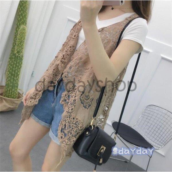 ベスト レディース サマー レース ジレ 彫り ノースリーブ 透けし 前開 アウター 春 カジュアル 夏 20代 30代 40代 50代 2020