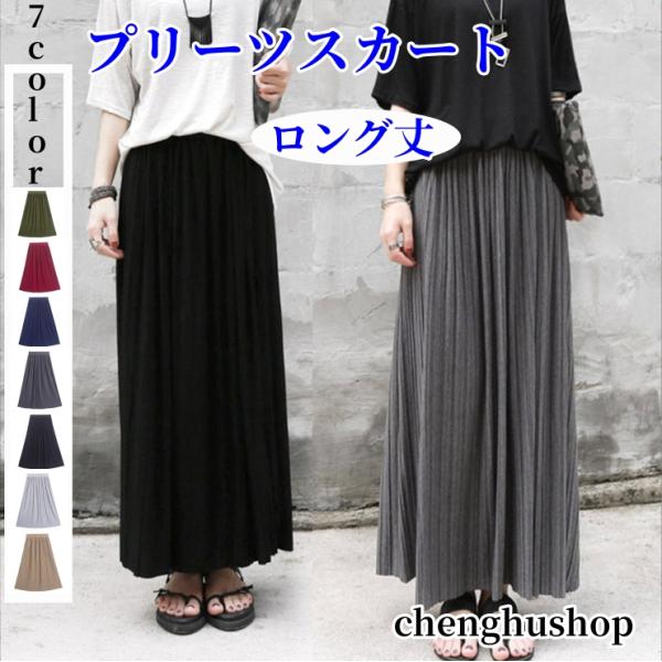 即納 スカート プリーツスカート ロングスカート レディーススカート 春 夏 秋 オシャレ ロング丈 Aラインスカート ウエストゴム マキシ丈プリーツスカート