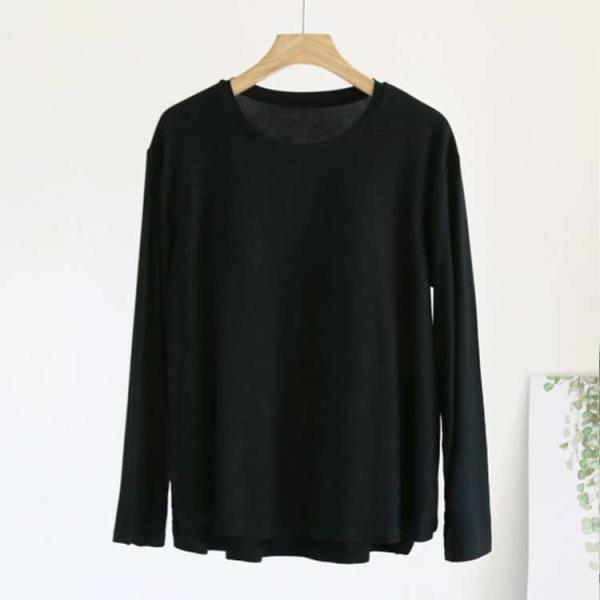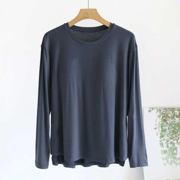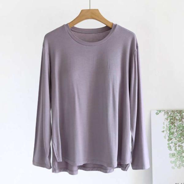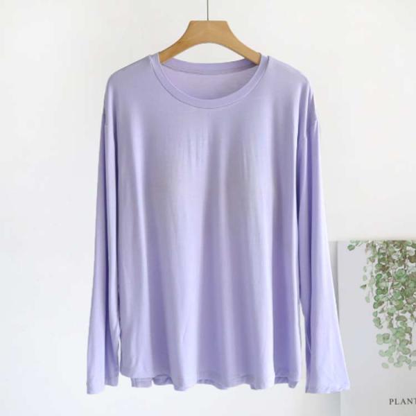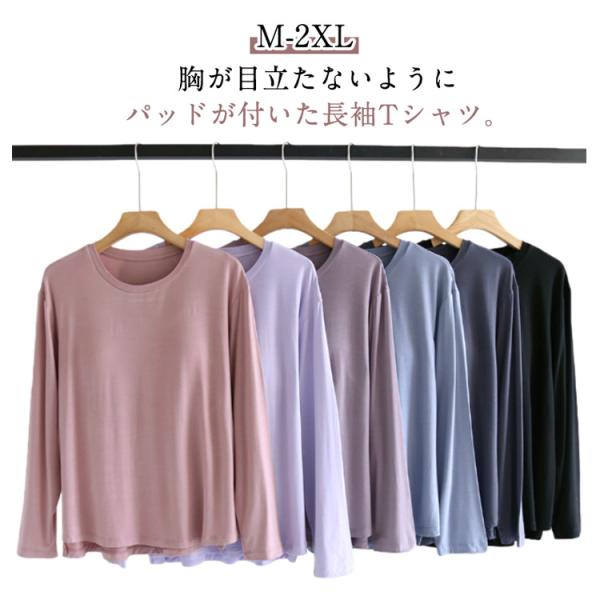 カップ付きTシャツ インナー モーデル ナイトブラ パット付長袖Tシャツ Uネック アンダーフリー 胸当てのパジャマ ナイトウェア 部屋着 レディース