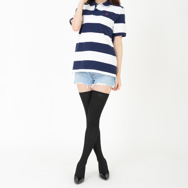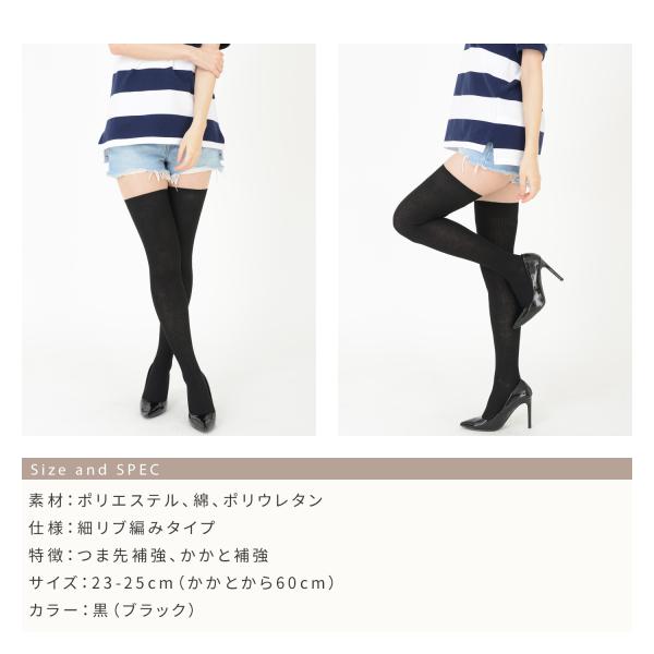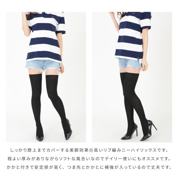 綿混 リブ編み ニーハイソックス 60cm丈 23-25cm オーバー二ー 靴下