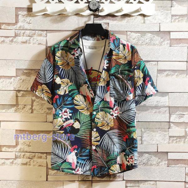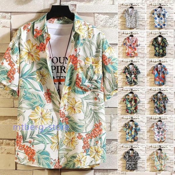 アロハシャツ メンズ 半袖 開襟 オープンカラー レーヨン 総柄 花柄 ボタニカル柄 アニマル柄 カクテル柄 ネオン柄 柄シャツ カジュアルシャツ