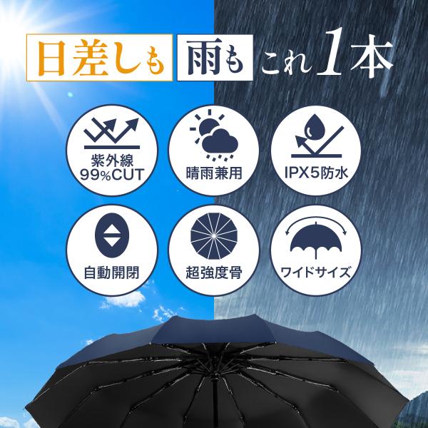 折りたたみ傘 晴雨兼用 自動開閉 12本骨 UVカット ワンタッチ 折畳み傘 撥水 耐風 コンパクト 軽量 メンズ レディース 通勤 通学