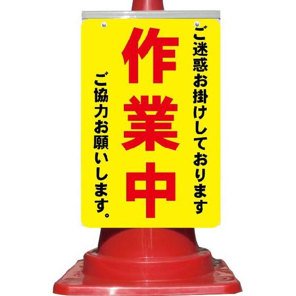 カラーコーン用看板 ご迷惑をお掛けしております 作業中 ご協力お願いします 全面反射