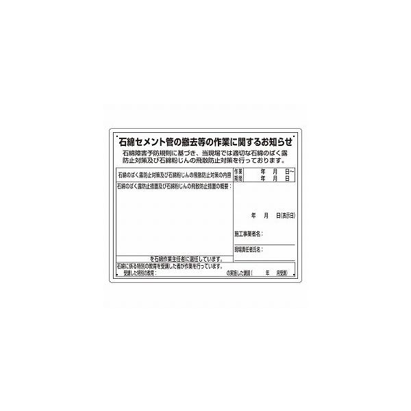 324-65A 石綿セメント管の撤去等の作業に関するお知らせ 石綿セメント管撤去作業用品 石綿障害予防規則対応標識 石綿暴露防止対策 ユニット