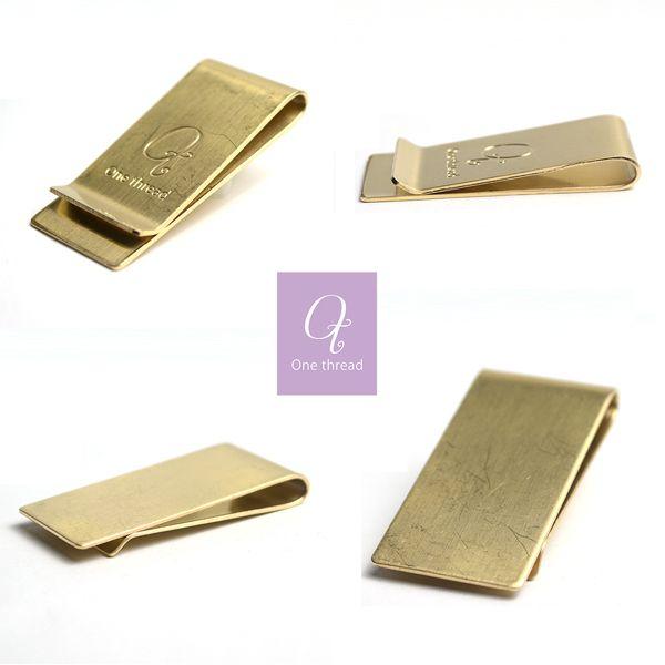 マネークリップ ワイド One thread 日本製 真鍮 ソリッドブラス ノンポリッシュ 金色 無垢 ゴールドカラー DM便対応