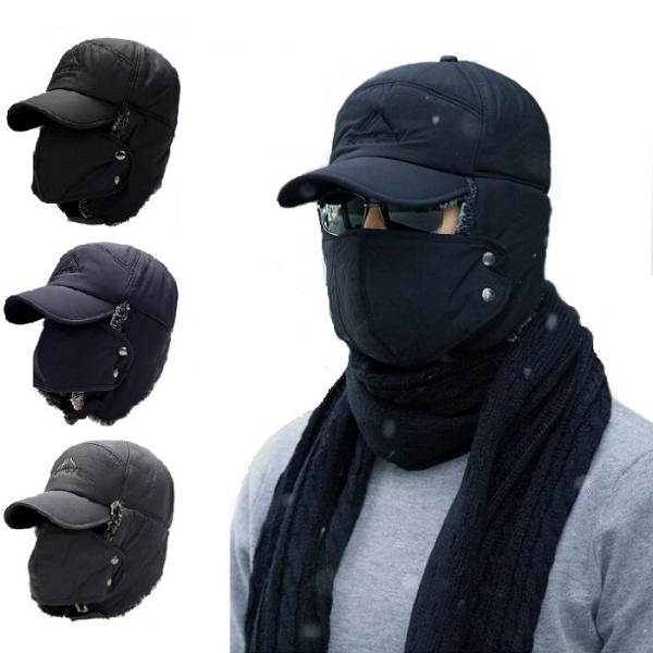 メンズ 帽子 冬 保温 耳当て付き 暖かい 2WAY 防寒帽子 マスク付き 防寒 裏起毛 スキー アウトドア キャップ あったか 紐調節 ms-141