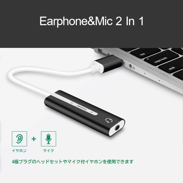 USBサウンドカード マイク付きイヤホンがつなげる4極プラグ用×1