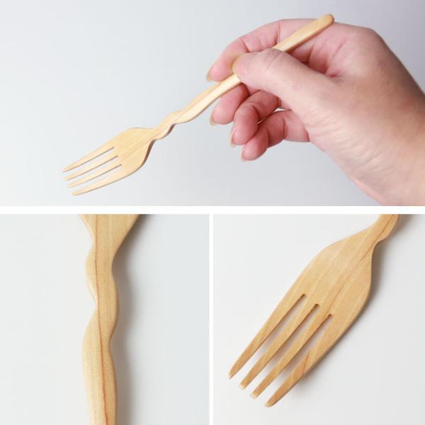 天然木製 波型パスタフォーク ナチュラル おしゃれ カトラリー 白木 フォーク 木 ベージュ