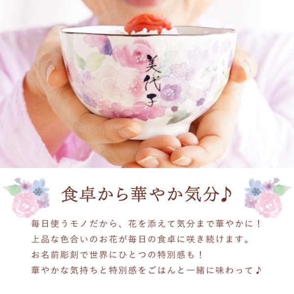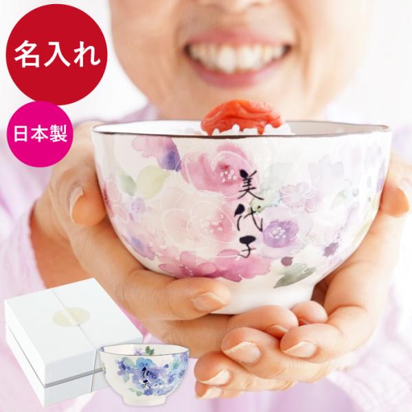 還暦祝い プレゼント 茶碗名入れ 名前入り ギフト 美濃焼 花工房 飯碗 米寿 喜寿 傘寿のお祝い 女性 祖母 母 花柄 お茶碗 おしゃれ 60代 70代 80代