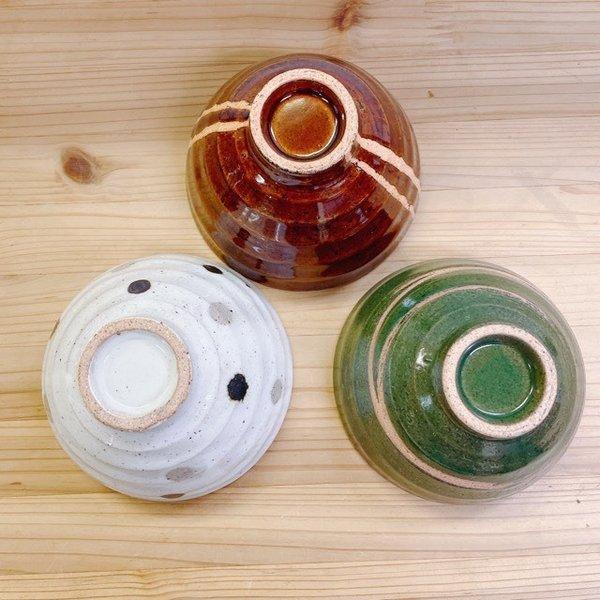 美濃焼 おしゃれ茶碗 日本製 陶器 かわいい 土もの 土物 ごはん 飯碗 中平 織部 アメ色 ドット 水玉