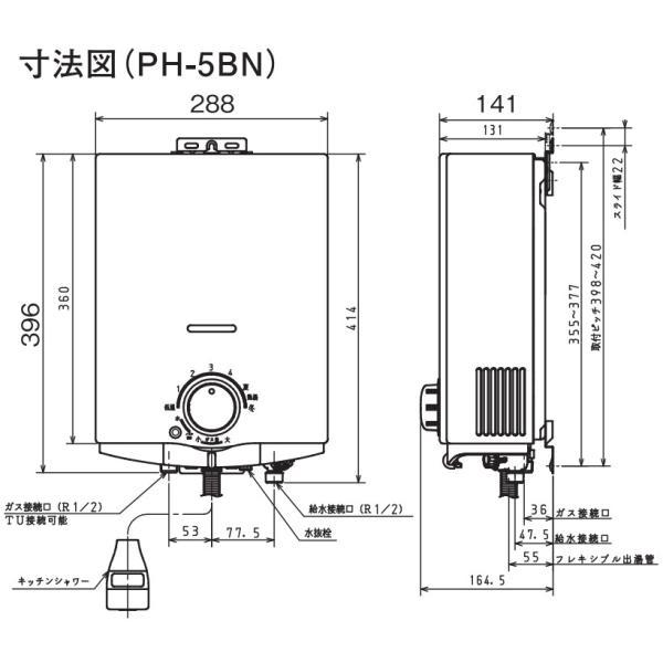ガス湯沸器 給湯器 PH-5BN パロマ LPガス / ガス小型湯沸器 元止式 ホワイト 5号