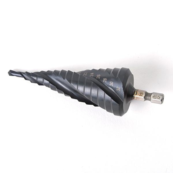 ブラックチタン 3刃 ステップドリル AlTiN 窒化チタンアルミコーティング コバルトハイス 六角軸 4mm-32mm 15段